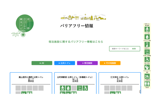 javascriptで情報を管理し、jQueryで絞り込みとワード検索ができるサイトを作りました。カテゴリー毎に色分けし、形式はカード式にすることで、スッキリとした印象を持たせました。カード式は見やすさの他、レスポンシブ対応の点でも有用です。